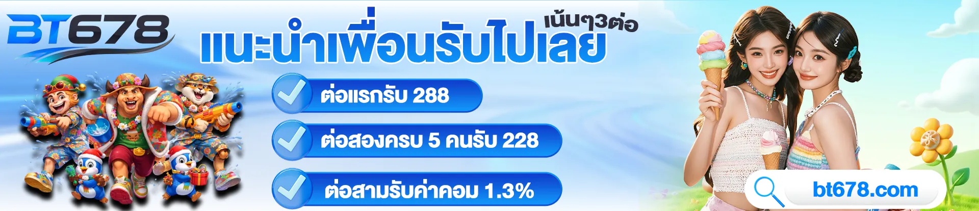 ตอบ : BT678 มีข้อดีคือ อินเทอร์เฟซใช้งานง่าย เกมหลากหลาย โบนัสเยอะ และรองรับการใช้งานบนมือถือได้สะดวก